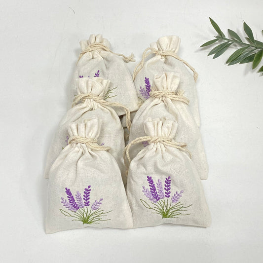 Six Handmade Embroidered Sachet Bags with Organic Lavender